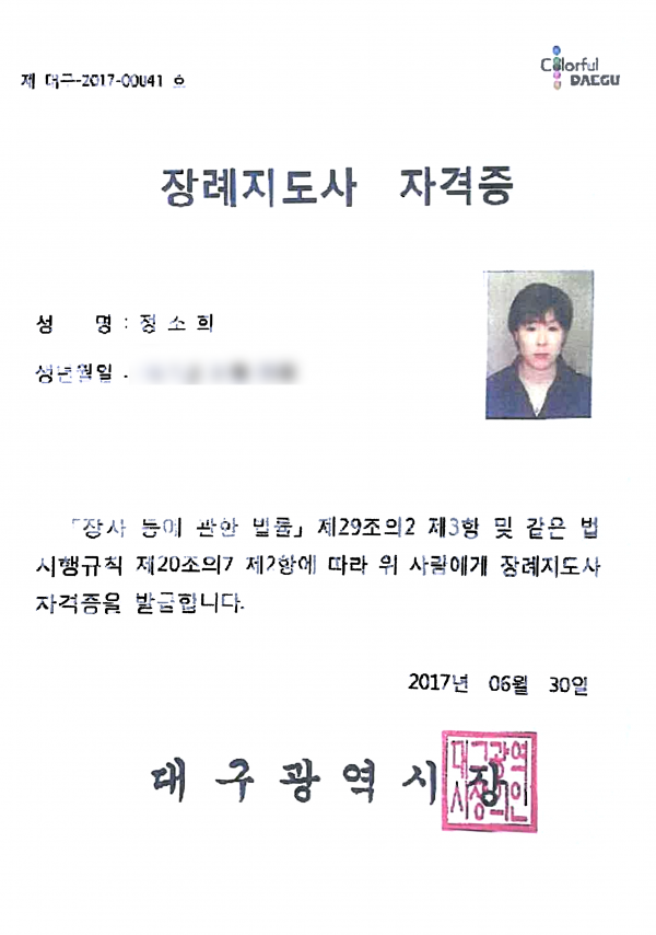 2017년 장례지도사 자격중