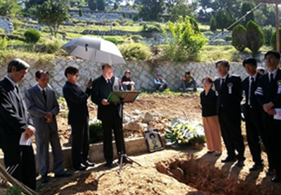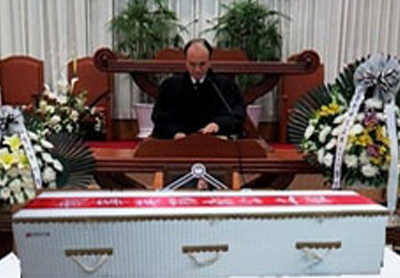 입관 후 목사님과 가족 기도